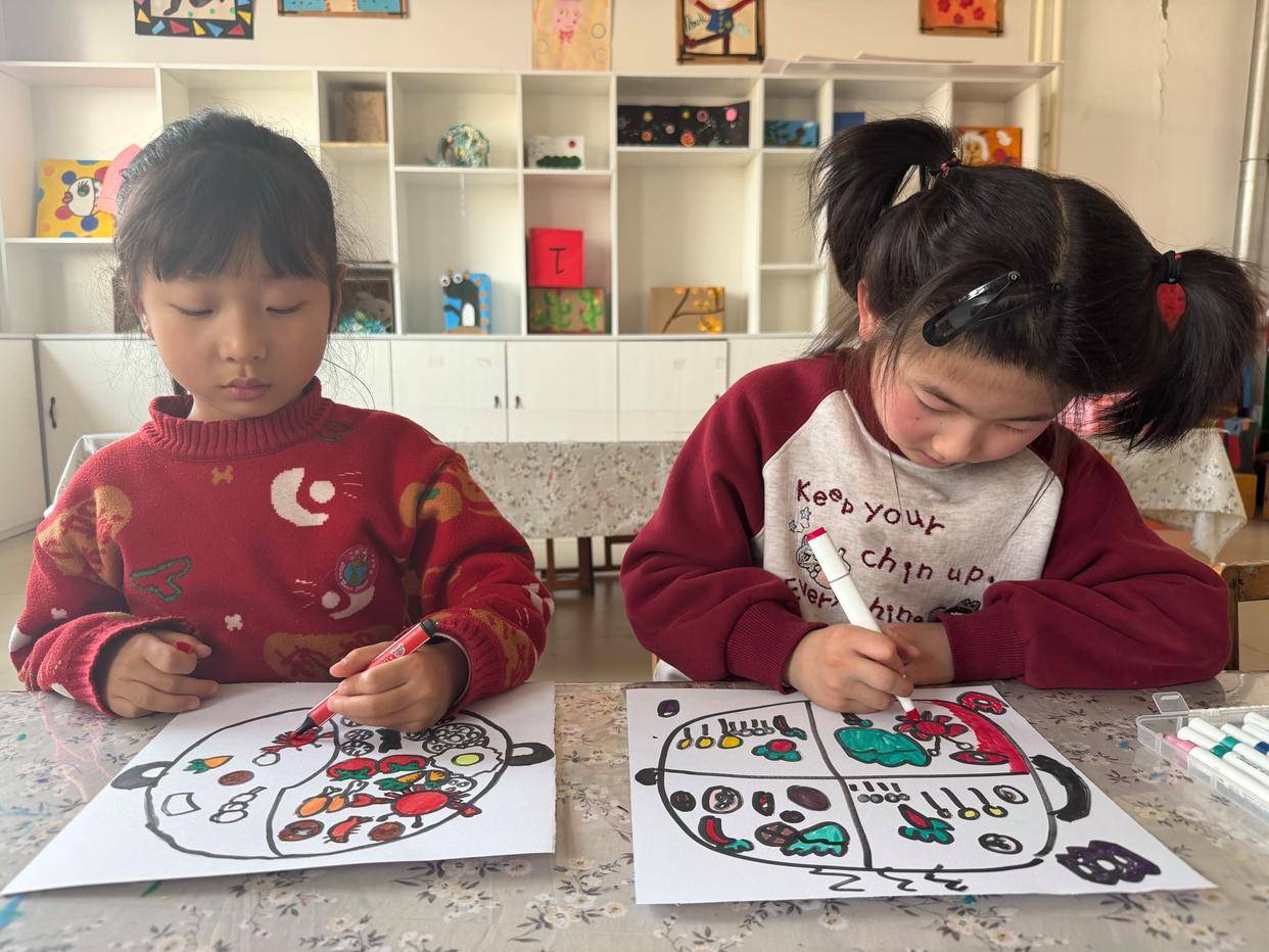 近日,东营市东营区牛庄镇中心幼儿园开展了一场以“暖洋洋的火锅”为主题的绘画活动。
