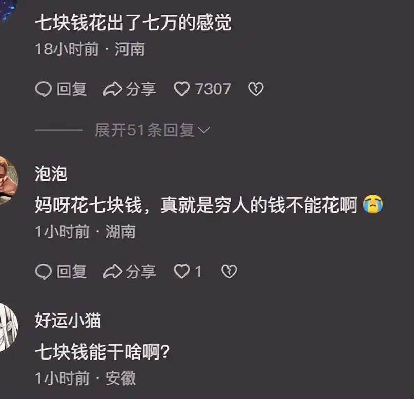 另一方却对家长表示理解,感慨 “成年人的压力让 7 块钱也成了负担”。这些网友回忆起自己的生活压力,房贷、车贷、日常开销…… 每一项都像一座大山压得人喘不过气。在他们看来,这位家长或许一整天辛苦工作都没挣到几个钱,7 块钱对家庭经济来说,确实不是一笔小数目,节俭也是无奈之举。