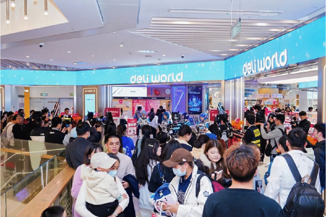 如果说超级文具节是得力打造的限定狂欢,那么其线下渠道的整体重塑,则为这种狂欢提供了常态化的底气。一个标志性的信号是,2025年得力上海品牌旗舰店Deli World在上海静安大悦城重磅落地,这是一座面积达1500平方米的“中国最大文具综合体”。